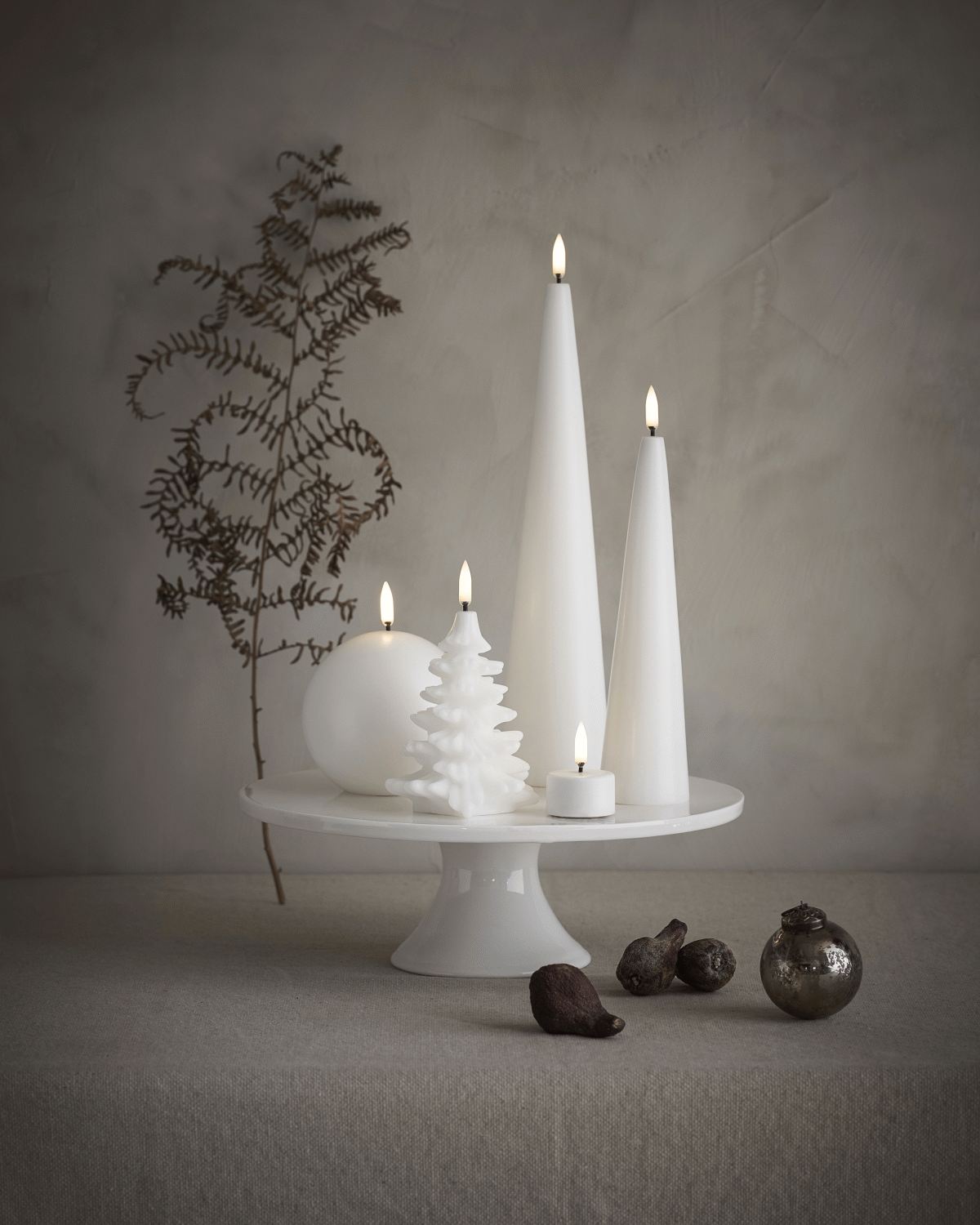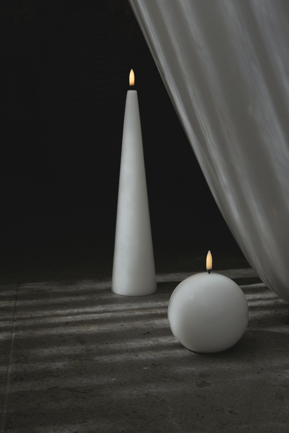 Round Candle fra Uyuni Lighting kombinerer klassisk elegance med moderne LED-teknologi i et sofistikeret bloklys, der skaber den perfekte atmosfære i dit hjem. Dette batteridrevne lys i Nordic White leverer et autentisk, varmt skær, der minder om ægte stearinlys, men uden risikoen for åben ild.Det elegante bloklys er fremstillet af virgin paraffin voks og ABS-materiale med en glat finish, der giver en luksuriøs følelse og ser ud som et traditionelt stearinlys. Med sine kompakte mål på 10 x 10 cm passer det perfekt ind i enhver indretning og kan placeres overalt i hjemmet - fra vindueskarme til spiseborde og kaminhylder.