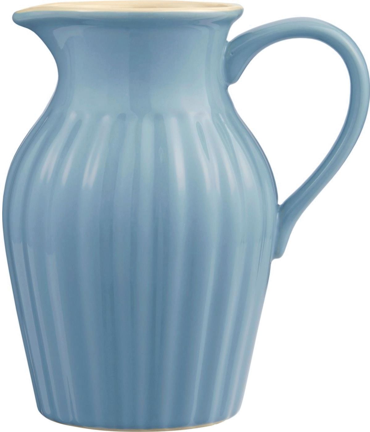 Denne elegante kande fra Ib Laursens populære Mynte-kollektion bringer charme og funktionalitet til dit køkken med sin smukke Blue Bell-farve. Den klassiske stentøjskande på 1,7 liter er designet til at være både praktisk og æstetisk tiltalende, hvilket gør den perfekt til servering af vand, saft eller andre kolde drikke ved middagsbordet.Mynte-serien er kendt for sin robuste kvalitet og tidløse skandinaviske design, der passer perfekt ind i moderne hjem. Stentøjsmaterialet sikrer ikke kun holdbarhed, men giver også kanden en autentisk og varm følelse, der inviterer til hygge og samvær. Den lyse Blue Bell-nuance tilfører et friskt og roligt præg til køkkenet og harmonerer smukt med andre farver i Mynte-kollektionen.