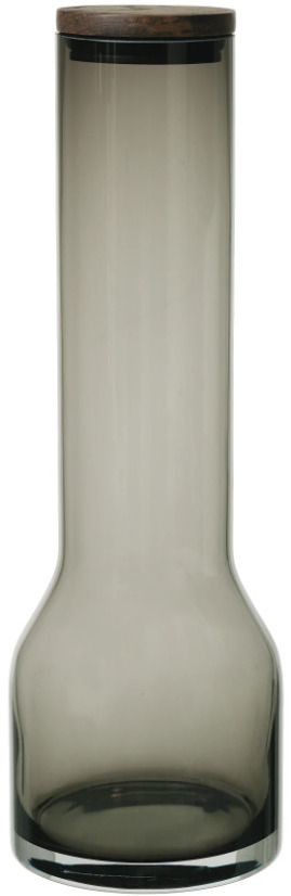Den traditionelle fremstillingsmetode for de håndblæste glasemner i LUNGO-serien resulterer ikke kun i de typiske træk som bobler, striber eller farvevariationer: Erfarne glaspustere kan også arbejde specifikt med materialetykkelsen, som blev brugt som et designtræk ved serien: vægtykkelsen på cirka 3 mm, det klare isbund og det korrekte, vinkelsnit af kanterne. I kombination med naturmaterialet eg, som er farvet til låget på karaflen, skabes individuelle genstande gennem forskellige vækstretninger og karakteristika. I modsætning til glaskroppen må trælåget ikke rengøres i opvaskemaskinen.