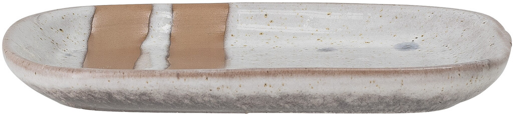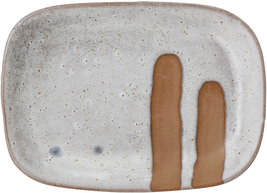 Masami Tallerken fra Bloomingville er et originalt stykke med næsten firkantet form i hvidt stentøj med designet af to lodrette striber i brun farve. Du vil blive forelsket i det og husk, at der på grund af glasurets natur kan forekomme farvevariationer.Længde:14 cm