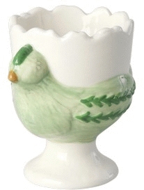 - Legende æggebæger designet som en grøn høne med knækket æg