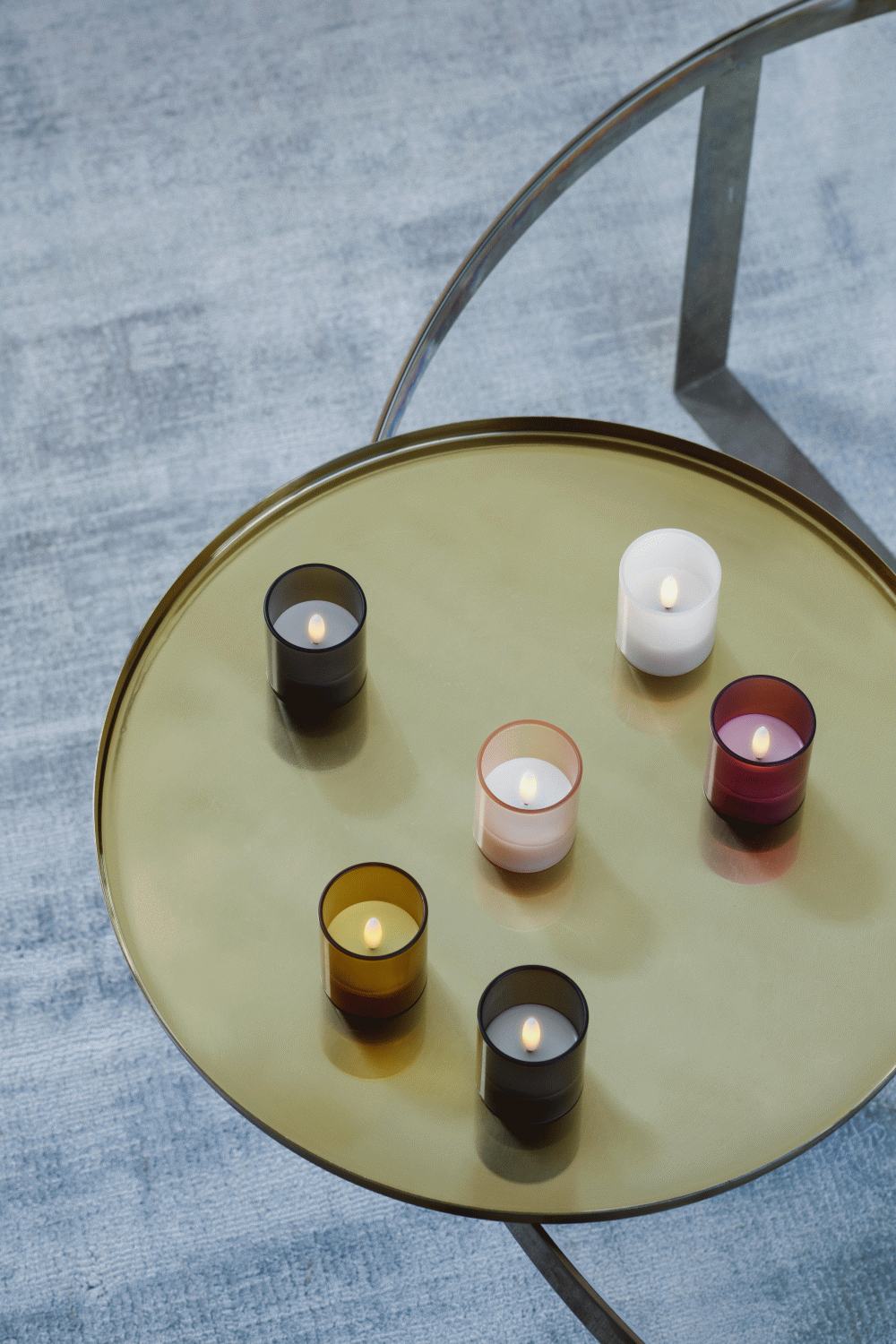Glaslysene fungerer som smukke dekorative elementer overalt i hjemmet. Placer dem på spisebordet for en romantisk middag, i stuen for en afslappet aften eller i entréen for at byde gæster velkommen med et varmt lys. Det kompakte format på Ø4,7 x H5,7 cm gør dem nemme at placere præcis, hvor du ønsker ekstra stemning.