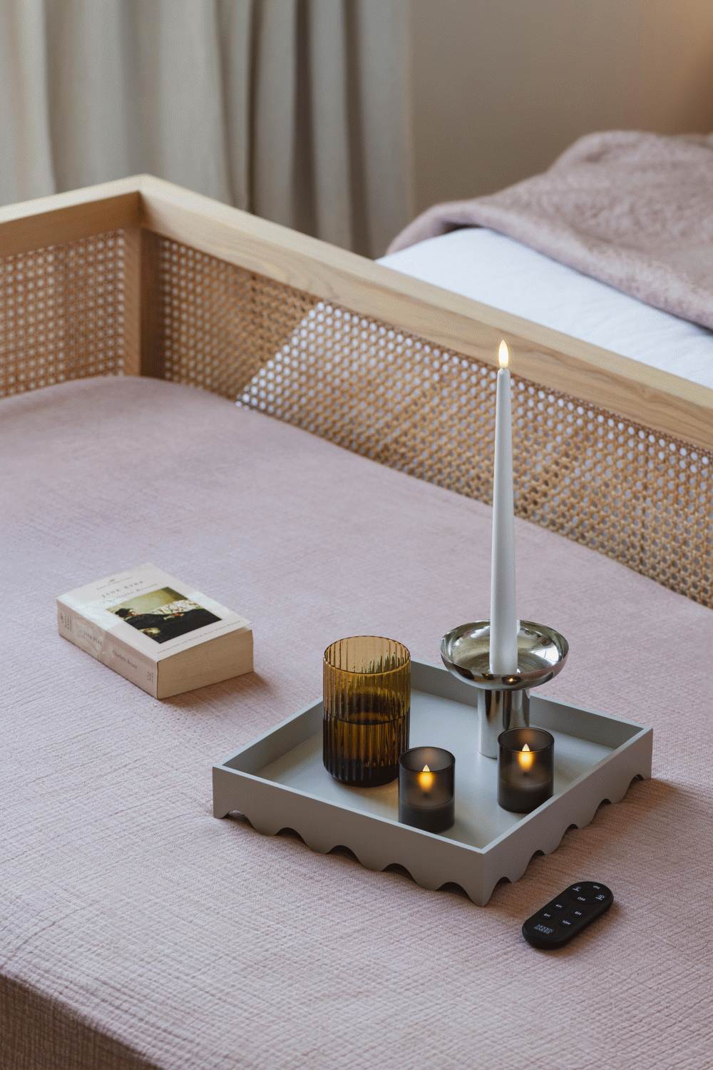 - Glas i farven Charcoal med indsat LED vokslys