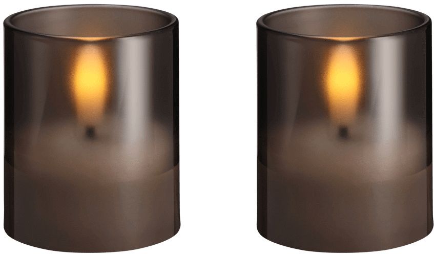 Moods & More Glaslys LED 2 stk. Ø4,7xH5,7 cm, Hurricane/Charcoal