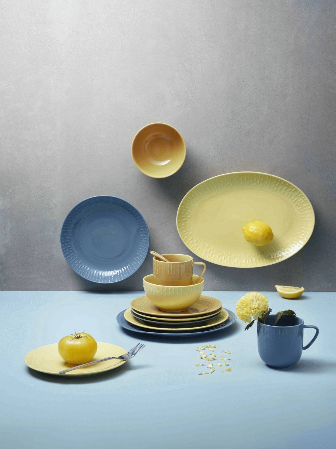 Den gule nuance kan nemt kombineres med andre farver fra Confetti-kollektionen, hvilket giver dig frihed til at skabe din helt egen bordsammensætning. Du kan vælge at matche serveringsfadet med middagstallerkener, salatskåle og andre produkter fra serien i samme farve for et harmonisk udtryk, eller du kan mixe forskellige farver for et mere legende og personligt look.