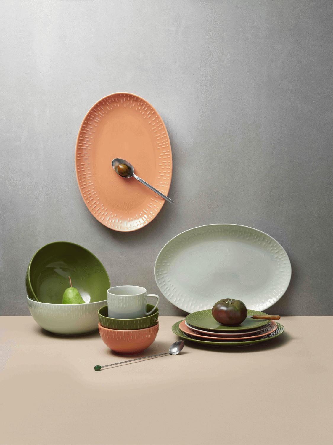- Ovalt serveringsfad i lysegrøn farve fra aida Confetti-serien