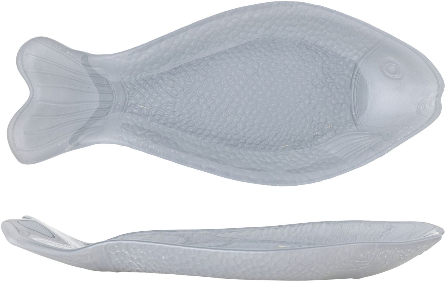 Yuna Serveringsfadet fra Creative Collection er et smukt køkkenfad, der forener funktionalitet med en kunstnerisk formgivning. Fadet er fremstillet i glas og udformet som en elegant fisk med detaljerede skæl i relief, der skaber en levende tekstur og et visuelt interessant udtryk. De fine ansigtstræk og den buede hale giver fadet karakter og gør det til mere end blot et praktisk redskab – det er et dekorativt element, der tilføjer personlighed til dit hjem.Den sprayfarvede overflade i en blød grå tone giver fadet et raffineret og moderne udtryk, der passer ind i de fleste indretningsstile. Den glatte finish fremhæver glassets kvalitet og gør fadet let at rengøre efter brug. Med sine moderate dimensioner er Yuna Serveringsfadet ideel til servering af snacks, tapas, frugt eller desserter, men det fungerer også fremragende som et selvstændigt dekorationselement på køkkenbordet, i vindueskarmen eller som en del af en stilfuld borddækning.