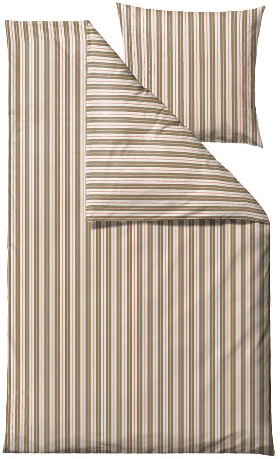 Flow Sengetøj fra Södahl bringer et elegant og grafisk udtryk ind i soveværelset med sit fine stribemønster i farven Olive Wood. Dette sengesæt kombinerer tidløst design med høj funktionalitet og er fremstillet i blød bomuld, der sikrer en behagelig søvnoplevelse hele året rundt.Sengetøjet er vævet i en klassisk lærredsvævning, som giver stoffet en naturlig tekstur og god åndbarhed. Bomulden føles blød mod huden og hjælper med at regulere temperaturen, så du kan sove komfortabelt uanset årstid. Det grafiske stribemønster er identisk på både for- og bagside, hvilket skaber et harmonisk og afbalanceret look, der passer perfekt ind i moderne soveværelser med sans for Skandinavisk design.