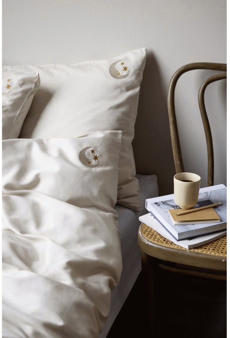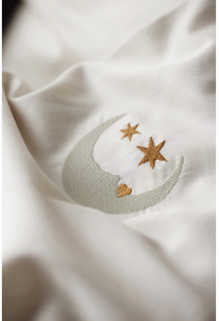 - Unikke broderede måne- og stjernedetaljer på både dyne- og pudebetræk