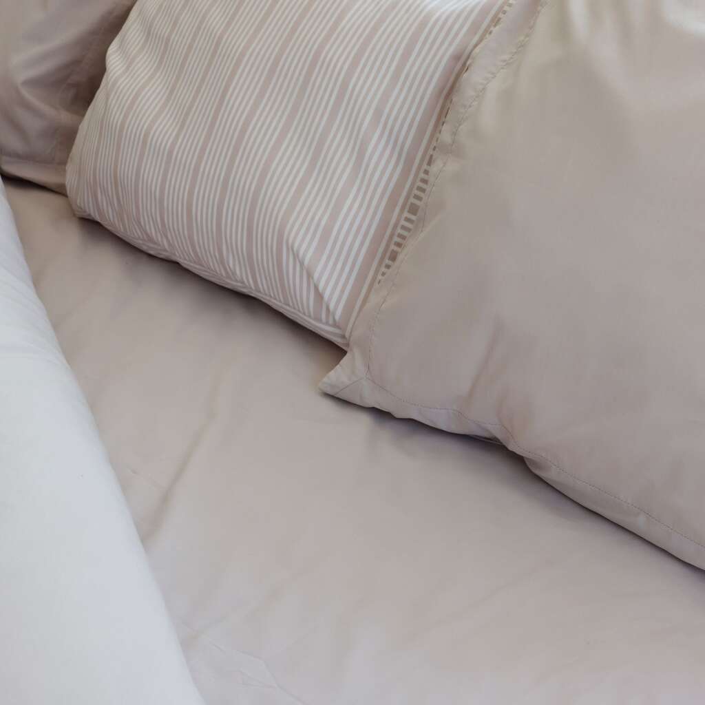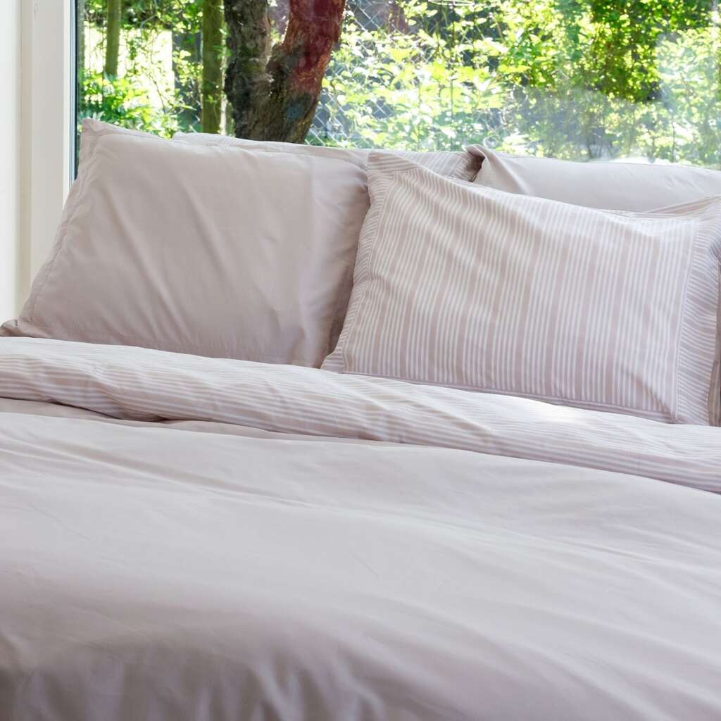 Den støvede rosa nuance tilfører rummet en rolig og harmonisk stemning, der emmer af skandinavisk design og æstetik. Sengetøjet er designet med omtanke for både funktion og udtryk, hvor de rene linjer og det minimalistiske design skaber en stilfuld ramme om din nattesøvn.