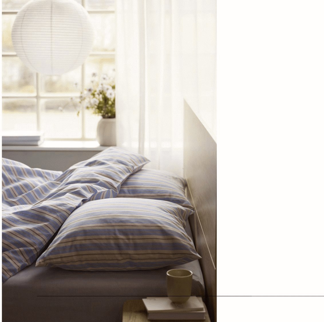 Sky Blue farven bringer en beroligende og frisk atmosfære til soveværelset. Den lyse blå nuance minder om en klar himmel og skaber en harmonisk stemning, der fremmer afslapning og velvære. Det elegante stribemønster tilføjer visuelt interesse uden at være overvældende, hvilket gør det nemt at kombinere med andre tekstiler og accessories.