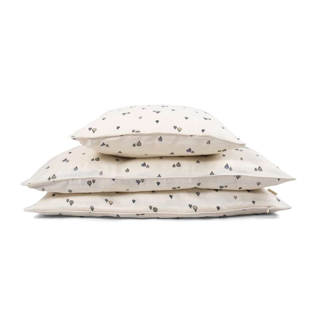 FILIBABBA Juniorsengetøj Dreamers bringer drømme og eventyr ind i børneværelset med sit unikke luftballon-design. Dette smukke sengetøj er en moderne genfortolkning af det populære luftballon-print, hvor håndtegnede balloner i forskellige størrelser skaber et levende og fantasifuldt udtryk. Det unisex design i harmoniske farver gør det perfekt til alle børneværelser, uanset stil og indretning.Sengetøjet er fremstillet i 100% økologisk satinvævet bomuld, der sikrer en ultraluksus følelse mod huden. Den satinvævede struktur giver ikke kun en silkeblød overflade, men også en smuk glans, der får luftballonerne til at træde smukt frem. Kvaliteten er certificeret efter GOTS organic standarder af CERES-0300, hvilket garanterer både miljøvenlig produktion og sikre materialer til dit barn.