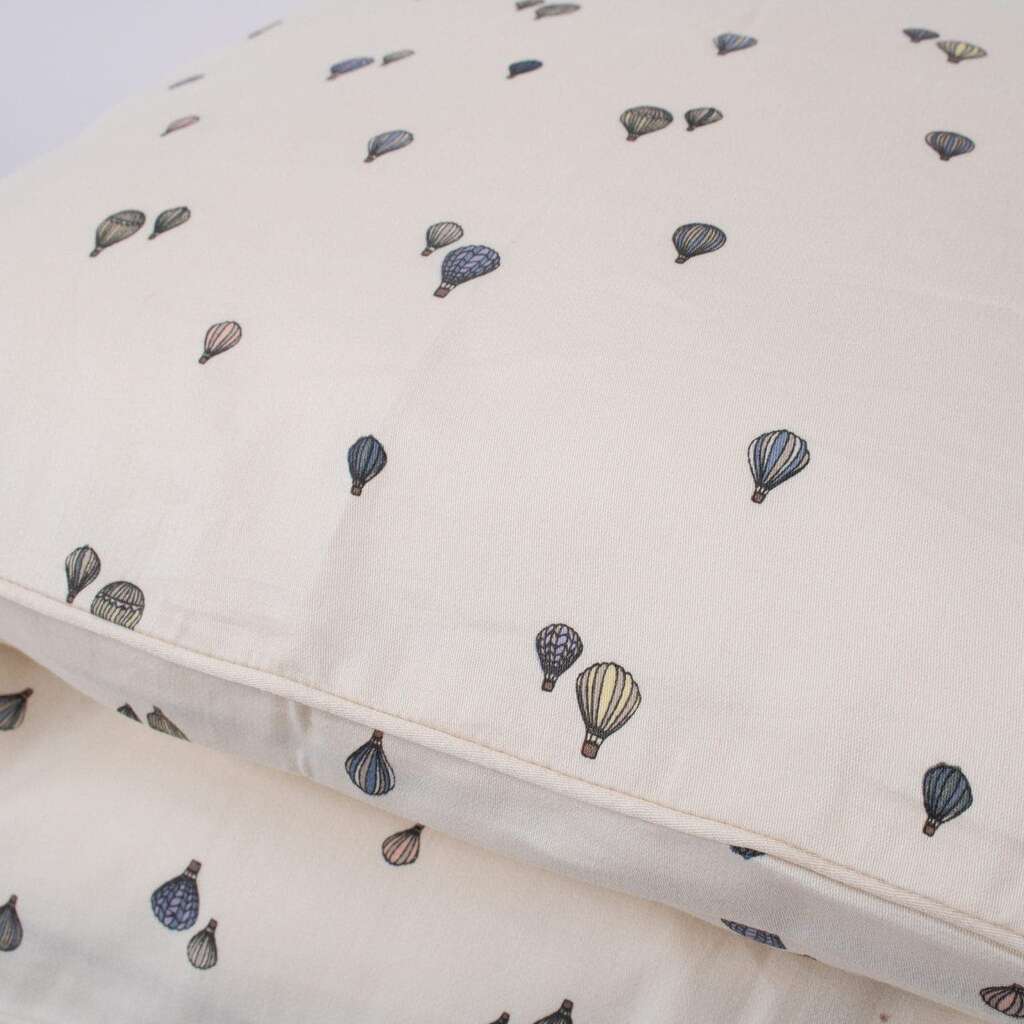 Sengetøjet er fremstillet i 100% økologisk satinvævet bomuld, der sikrer en ultraluksus følelse mod huden. Den satinvævede struktur giver ikke kun en silkeblød overflade, men også en smuk glans, der får luftballonerne til at træde smukt frem. Kvaliteten er certificeret efter GOTS organic standarder af CERES-0300, hvilket garanterer både miljøvenlig produktion og sikre materialer til dit barn.