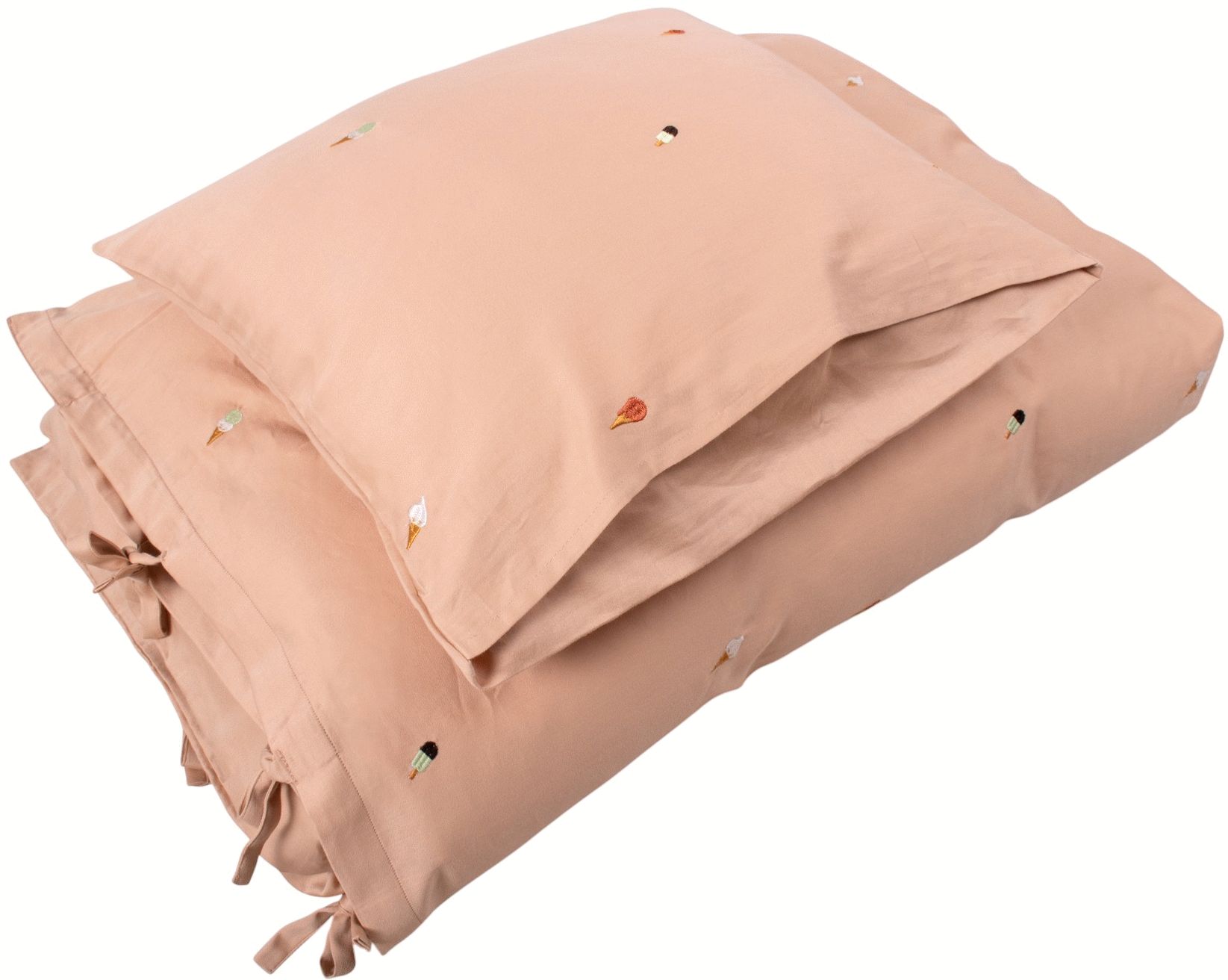 Sengetøjet er fremstillet i 100% GOTS-certificeret økologisk bomuld, som sikrer både bløde nætter og miljøbevidste valg for hele familien. Den omhyggelige brodering af forskellige iskreationer gør sengetøjet til et sandt kunstværk, der stimulerer barnets fantasi og skaber en hyggelig atmosfære i soveværelset.
