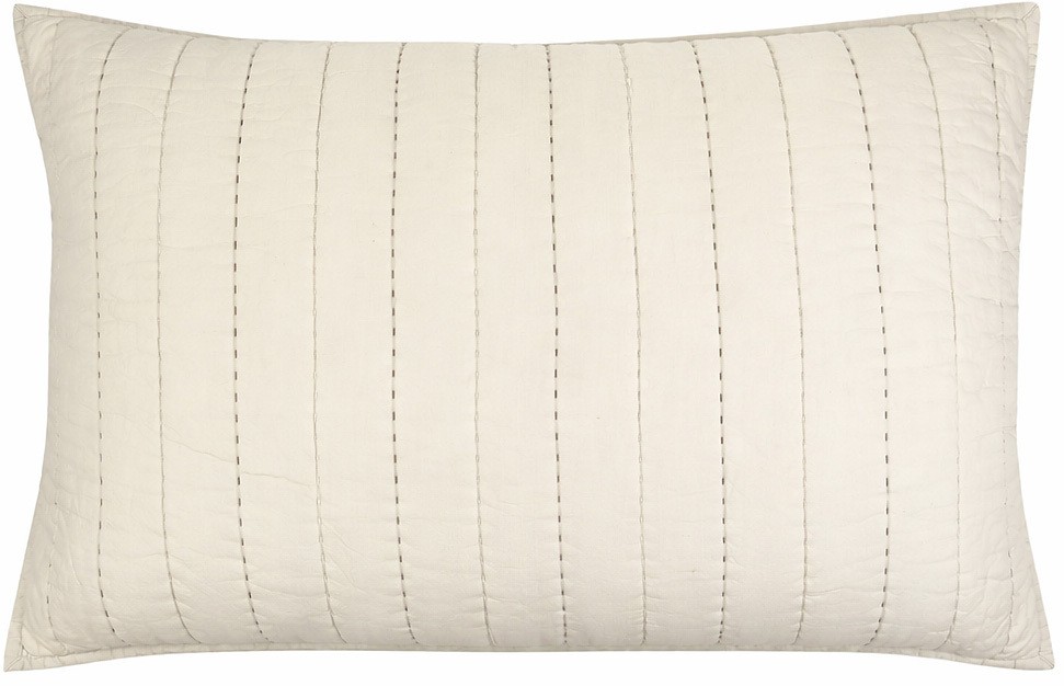 MOUD Home Senses Quiltet Pudebetræk i 50x70 cm tilføjer en eksklusiv dimension til soveværelset med sin håndquiltede finish og nordiske æstetik. Dette pudebetræk i blød, vasket bomuld er skabt som det ideelle supplement til Senses sengetæppeserien og skaber en sammenhængende indretning med fokus på kvalitet og komfort.Pudebetrækket udmærker sig ved sin karakteristiske quiltning, der udføres med omhu og håndværksmæssig præcision. Den skiftevise brug af matchende og brun tråd giver hvert enkelt pudebetræk et personligt og unikt udtryk, der adskiller sig fra standardløsninger. Det indiske quilt håndværk, som ligger til grund for produktionen, sikrer en finish af høj kvalitet med detaljer, der vidner om ægte håndværkstradition.