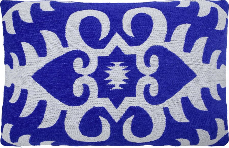 Det grafiske mønster i råhvidt skaber en elegant detalje, der fanger blikket uden at være for dominerende. Den dybblå farve fungerer som en rolig base, der let kan kombineres med andre tekstiler og farver i hjemmet. Pudebetrækket kan bruges alene som et statement-stykke eller sammen med andre puder i komplementære farver for at skabe et harmonisk og indbydende udtryk på sofaen eller sengen.