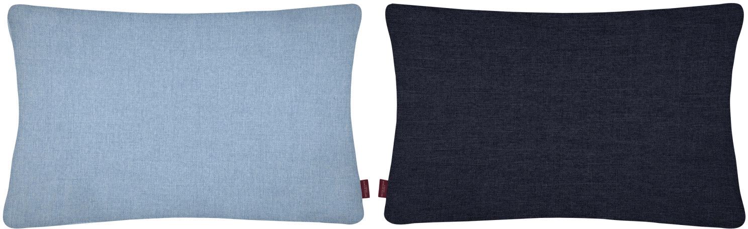 SCALA-pudebetrækket i farven blue kombinerer en lyseblågrå forside med en mørkeblå bagside i midnight blue. De to nuancer skaber et raffineret farvespil, mens møbelstoffets struktur giver puden et levende og taktilt udtryk. Et elegant valg, der tilfører friskhed og ro til sofaen, sengen eller loungestolen. Bemærk, at dette produkt kun er et pudebetræk. Fyld medfølger ikke.Vaskes ved 30° C skånevask med vrangen ud. Brug ikke blegemiddel. Ikke velegnet til tørretumbling.Længde: 60 cm