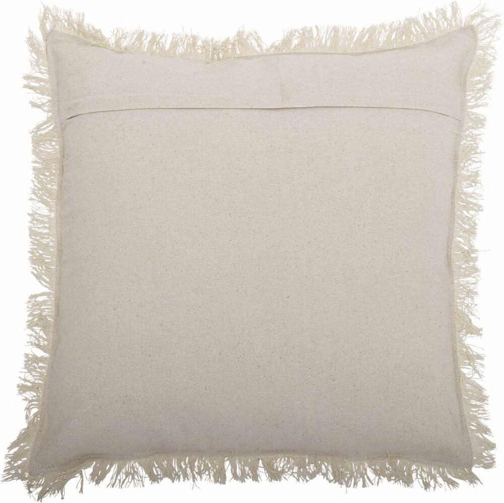 Bagsiden er udført i ensfarvet bomuld, hvilket skaber en elegant kontrast til den dekorerede forside og gør puden vendbar efter behov. De let frynsede kanter tilføjer et afslappet, boheme-inspireret udtryk, der bryder med det helt glatte og polerede. Dette lille designelement gør puden mindre formel og mere indbydende.