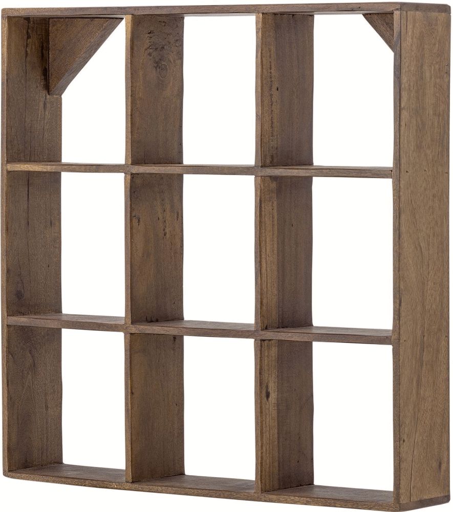 Tilo Hylden fra Creative Collection er et kvadratisk vægmodul, lavet af genanvendt træ med en voksbehandlet overflade. Den har ni dybe rum og diagonale træafstivere bagpå. Udført i varme brune nuancer. Da produktet er fremstillet af naturmaterialer, kan farverne variere, og hver hylde er derfor unik.Længde: 53 cm