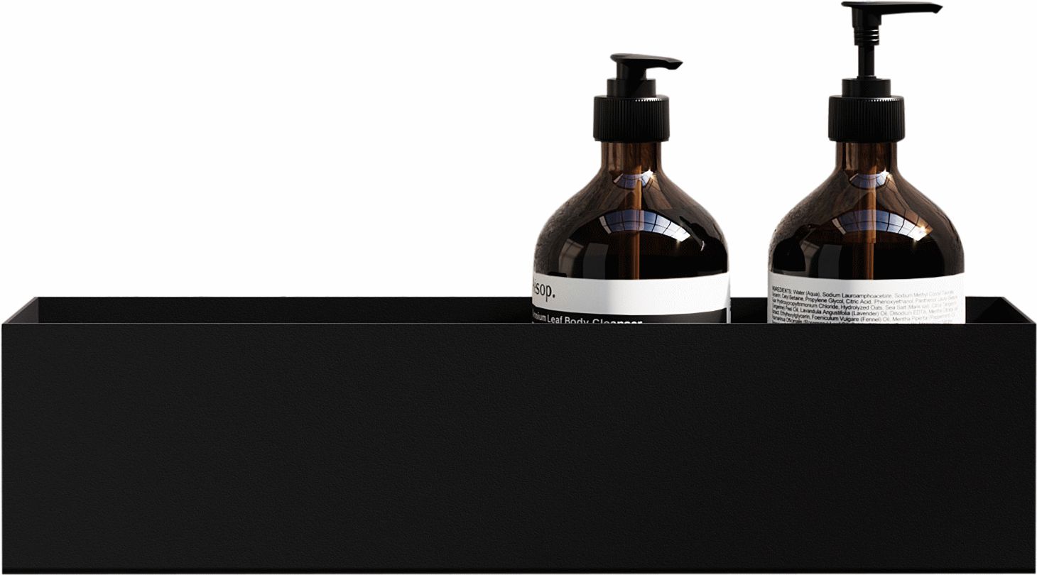 Hylden er fremstillet i rustfrit stål med en pulverlakeret overflade, der sikrer lang holdbarhed og beskytter mod rust – selv i fugtige bademiljøer. Den sorte finish giver et moderne udtryk, der passer perfekt til både klassiske og moderne badeværelsesindretninger. Designet er minimalistisk og diskret, så hylden nemt integreres i enhver brusekabine uden at virke påtrængende.