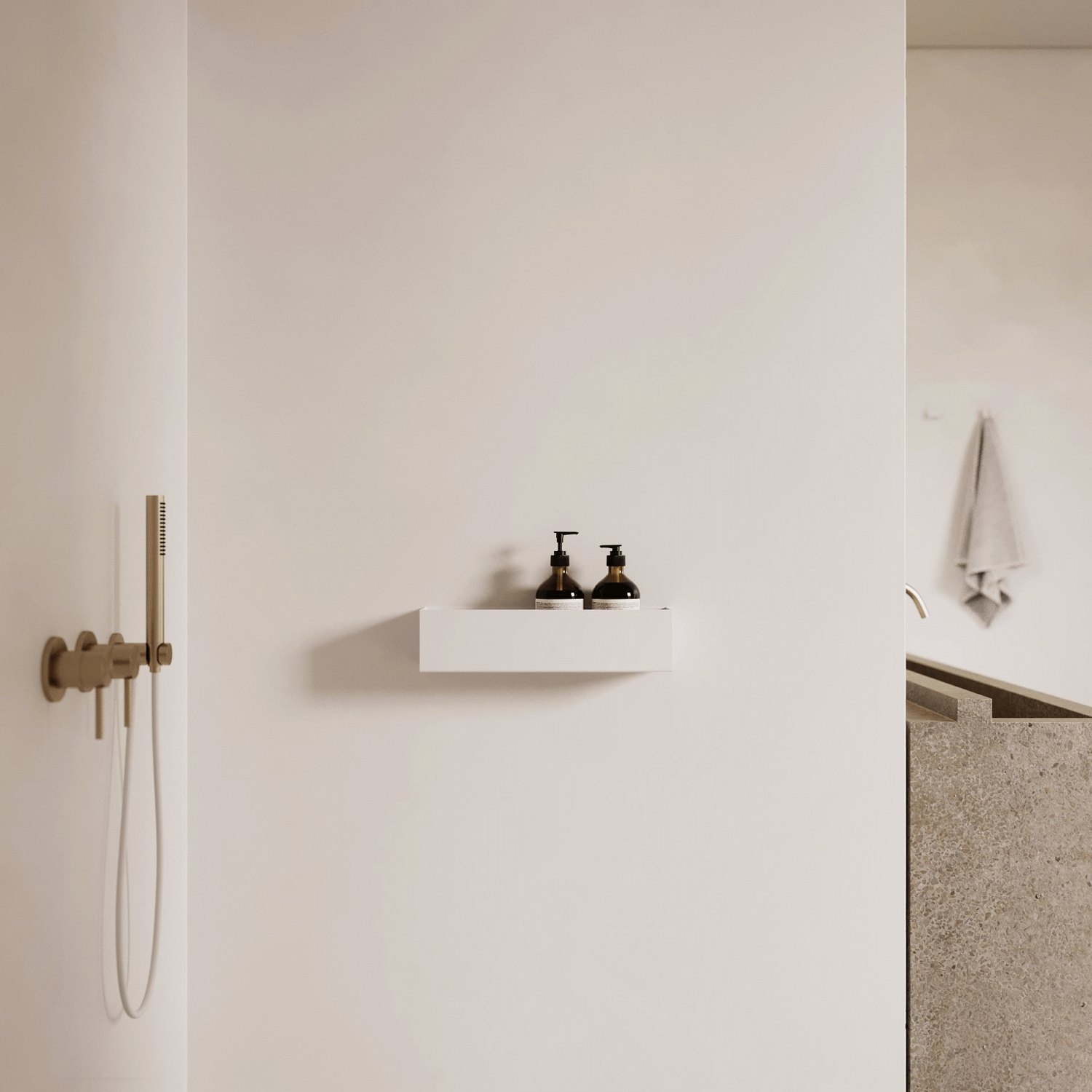 NICHBA Bath Shelf 40 cm bringer orden og funktionalitet til dit badeværelse med et elegant og minimalistisk design. Denne hylde er specielt udviklet til brusenichen, hvor den skaber praktisk opbevaring til shampoo, balsam og andre badeprodukter. Det gennemtænkte design kombinerer nordisk æstetik med intelligent funktionalitet, så dit badeværelse fremstår både pænt og organiseret.Hylden er fremstillet i rustfrit stål med en pulverlakeret overflade i hvid, som giver en ren og moderne fremtoning. Den pulverlakerede finish sikrer, at hylden bevarer sit flotte udseende gennem lang tid, selv i det fugtige badeværelsesmiljø. Materialevalget garanterer holdbarhed og modstandsdygtighed, så du kan nyde din hylde i mange år fremover.