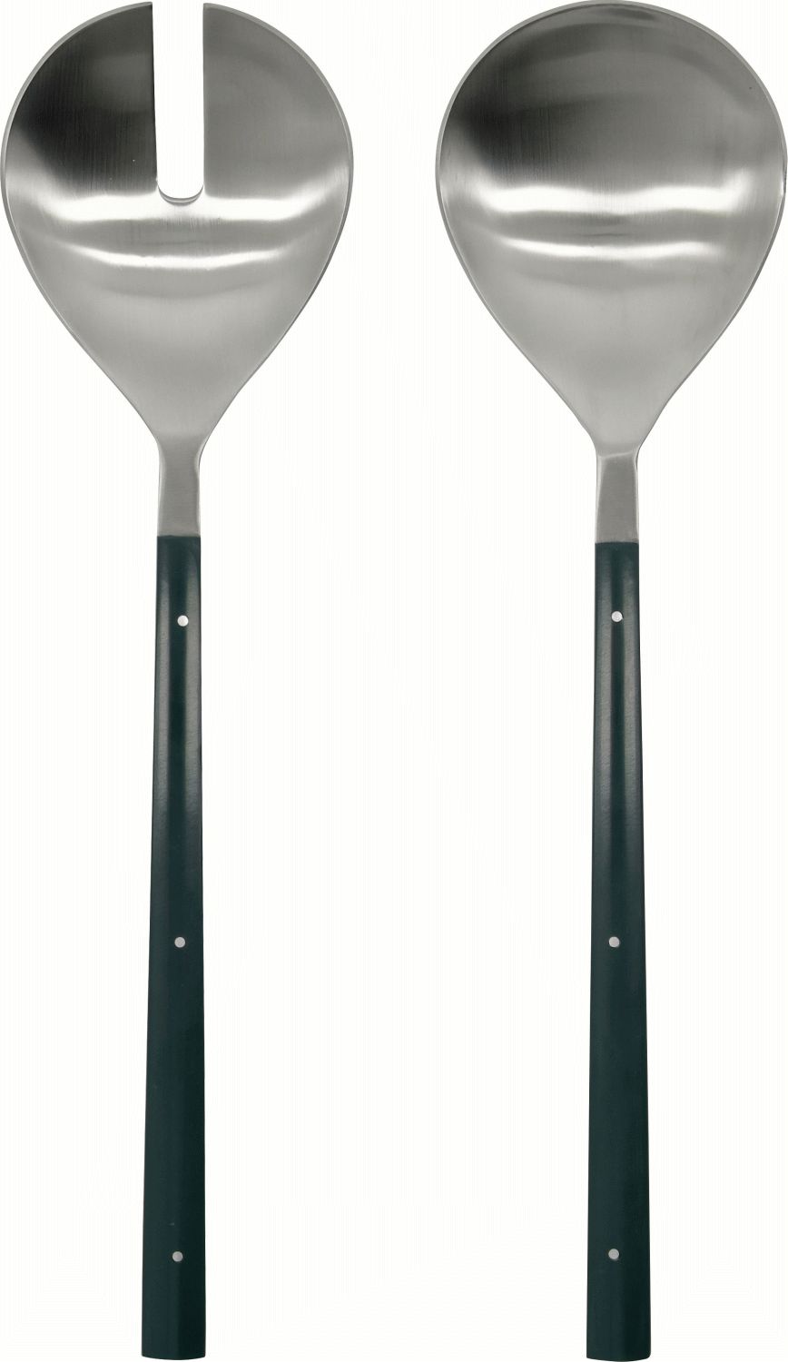 - Todelt salatbestik i mørkegrøn og sølvfinish