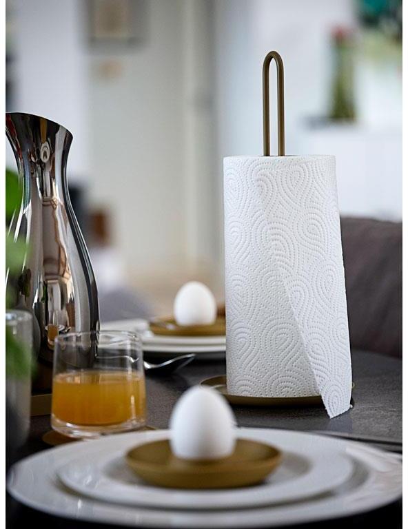 Køkkenrullen er uundværlig – den skal være lige ved hånden og være nem at rykke et stykke papir af. Og så skal den helst ikke stå og vikle sig af rullen ved egen kraft. Derfor har Zones køkkenrulleholder fået lidt ekstra kant. Helt bogstaveligt.