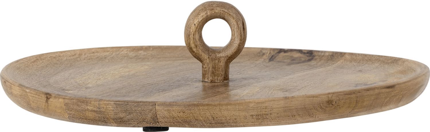 Bloomingville Nonnie Serveringsbakken i mangotræ bringer en naturlig elegance til borddækningen og gør det nemt at servere snacks, drikkevarer eller desserter med stil. Den runde bakke har en diameter på 35 cm og er fremstillet i lakeret mangotræ, der fremhæver materialets autentiske karakter med synlige åretegninger og bløde brune nuancer i en varm beige tone.Den karakteristiske ringformede hank i midten gør bakken let at bære og tilføjer samtidig et dekorativt element til designet. Med sin høyde på 7,5 cm har bakken en passende kant, der sikrer, at indholdet holdes på plads, mens den stadig er let at håndtere. Mangotræet giver bakken en robust konstruktion, der kan klare daglig brug, samtidig med at den bevarer sin æstetiske værdi.