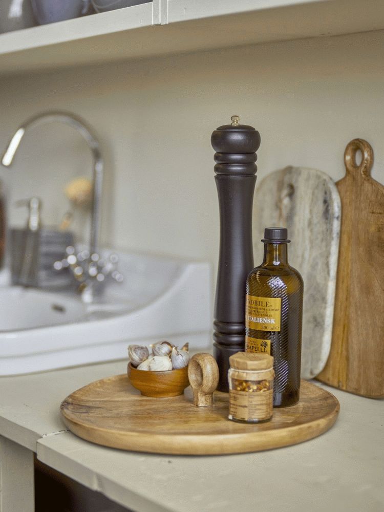 Med sine kompakte mål på 28,5 cm i længden, 20 cm i bredden og 12 cm i højden passer Nonnie æsken perfekt til hylder, skabe eller bordplader. Den diskrete størrelse gør det muligt at integrere æsken i både mindre og større køkkener, hvor den både fungerer som praktisk opbevaring og som et dekorativt element. De afrundede håndtag sikrer, at æsken er nem at gribe fat i, selv når hænderne er optaget.
