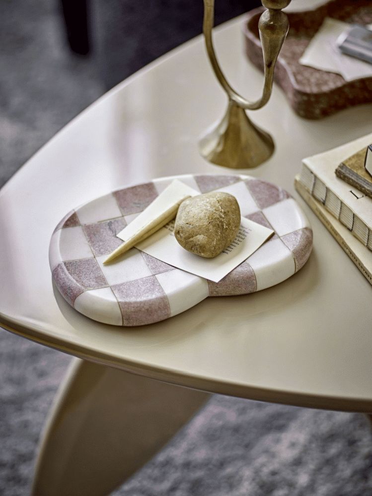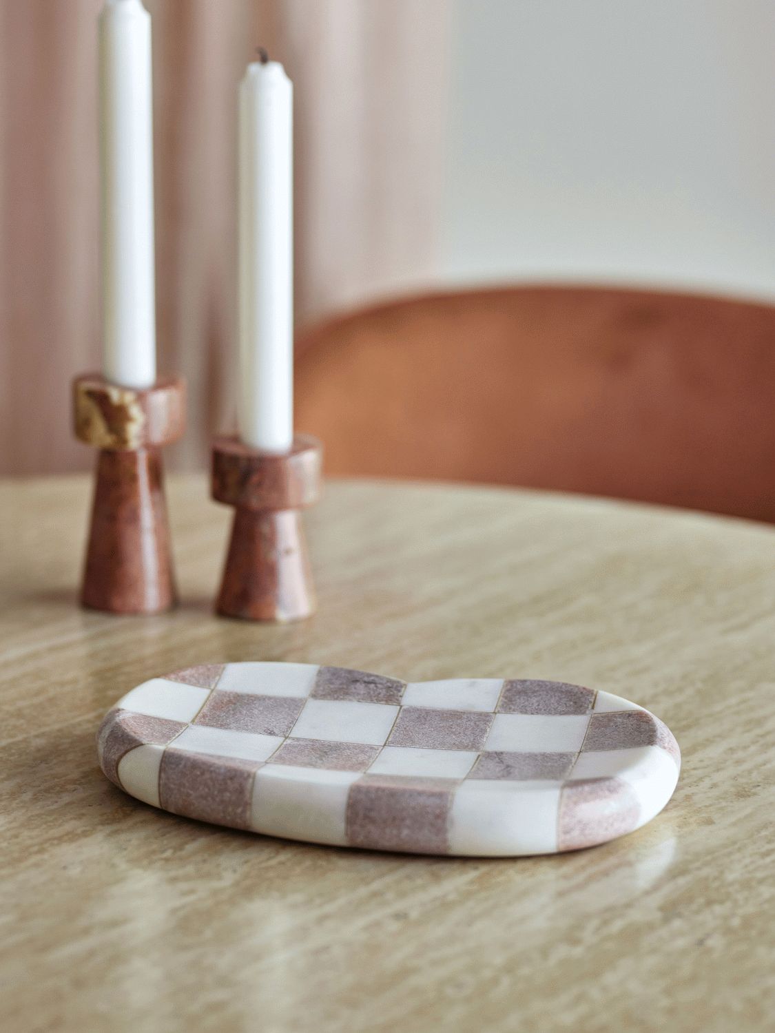 Petrea Dekorationsfad fra Bloomingville kombinerer funktionel elegance med et karakteristisk design, der tilfører personlighed til ethvert rum. Dette smukke fad er fremstillet i marmor med en poleret overflade, der fremhæver materialets naturlige skønhed og giver en luksuriøs finish. Det særprægne mønster af skiftevis rosa og lysebeige tern skaber en legende kontrast, der gør fadet til et iøjnefaldende element i hjemmet.Designet er kendetegnet ved bløde, buede kanter, der giver fadet en organisk og indbydende form. De fine marmoreringer i overfladen tilføjer dybde og karakter, mens hver nuance og åring fortæller sin egen historie. Fordi fadet er lavet af naturmarmor, vil der forekomme farvevariationer fra stykke til stykke, hvilket sikrer, at dit fad er helt unikt og ikke kan findes identisk andre steder.
