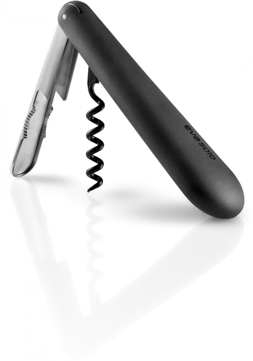 Tjenerproptrækkeren ligger godt i hånden og er let at betjene. Den har en indbygget folieskærer, bestående af et lille rilleskær, som gør det let at fjerne folien fra flaskehalsen. Når du ikke bruger proptrækkeren kan den foldes sammen og fylder derfor minimalt i skuffen.
