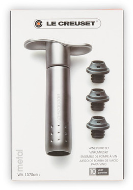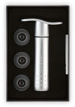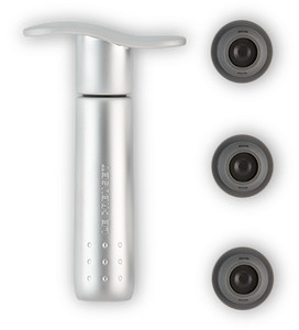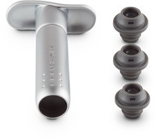 Vinelskere ved, hvor vigtigt det er at fjerne luft fra en åbnet flaske for at bevare og forlænge de fine smage og aromaer. Med denne vinpumpe i høj kvalitet kan du gemme din vin i flere dage. Den passer til de fleste flasker og leveres med tre vakuum-propper.Materiale: ABS plastik