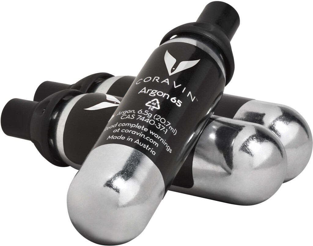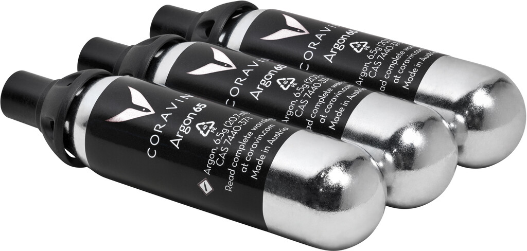 Coravin Pure ™ gaspatroner forsyner alle Coravin-vinsystemer. De er fyldt med 100 % ren argongas, der sætter flasken under tryk, så vin kan strømme gennem nålen. Derefter dækker gassen den resterende vin, når systemet er fjernet, så man undgår oxidering. Gaspatronerne er kompatible med alle Coravinsystemer til forbrugere.