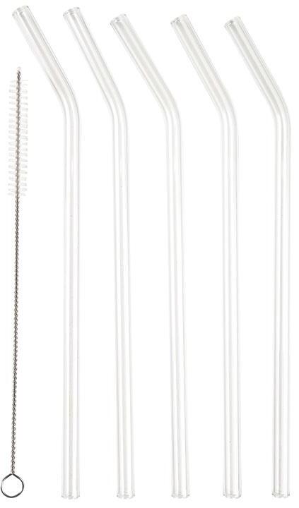 Genanvendelige glassugerør med knæk, længde 21,5 cm. Diameteren på hele 8 mm gør sugerørene velegnede til smoothies, drinks, milkshake m.m. Glassugerør er et godt og bæredygtigt alternativ til plastik, da de kan bruges igen og igen, og derved skåner du miljøet for plastikaffald. Sugerørene er velegnede til både kolde og varme drikkevarer, da borosilikatglasset er holdbart og klarer store temperaturforskelle. De er lette at gøre rene efter brug med den medfølgende børste.