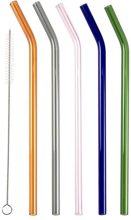 Genanvendelige glassugerør med knæk, længde 21,5 cm. Diameteren på hele 8 mm gør sugerørene velegnede til smoothies, drinks, milkshake m.m. Glassugerør er et godt og bæredygtigt alternativ til plastik, da de kan bruges igen og igen, og derved skåner du miljøet for plastikaffald. Sugerørene er velegnede til både kolde og varme drikkevarer, da borosilikatglasset er holdbart og klarer store temperaturforskelle. De er lette at gøre rene efter brug med den medfølgende børste.