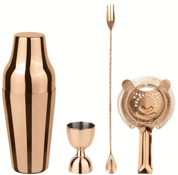 Paderno Parisian Shaker 4 Dele i Kopper bringer professionel barkvalitet direkte ind i dit hjem med et elegant og funktionelt design. Dette komplette barsæt er fremstillet i rustfrit stål med en spejlblank finish, der understreger materialets høje kvalitet og giver ethvert barområde et eksklusivt udtryk.Det karakteristiske ved denne Parisian-serie er den imponerende spejleffekt, som opnås gennem en omhyggelig polering med tilsætningsstoffer og mekaniske børster fremstillet af forskellige materialer. Denne proces glatter det rustfrie stål og giver det en ekstraordinær højglans, der fanger lyset på en måde, som løfter både form og design. Refleksionerne i overfladen beriger produktet visuelt og skaber en æstetik, der signalerer kvalitet og stil.