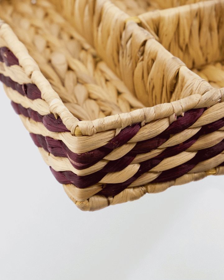 Vandhyacint er et naturligt materiale, der giver produktet en unik tekstur og et autentisk udtryk. Den håndflettede fremstillingsmetode betyder, at hver organisator er individuel med små variationer i farve, finish og størrelse – en del af håndværkets charme. Materialets naturlige nuancer spænder fra lyse beige til varmere brune toner, der passer smukt ind i skandinaviske interiører.