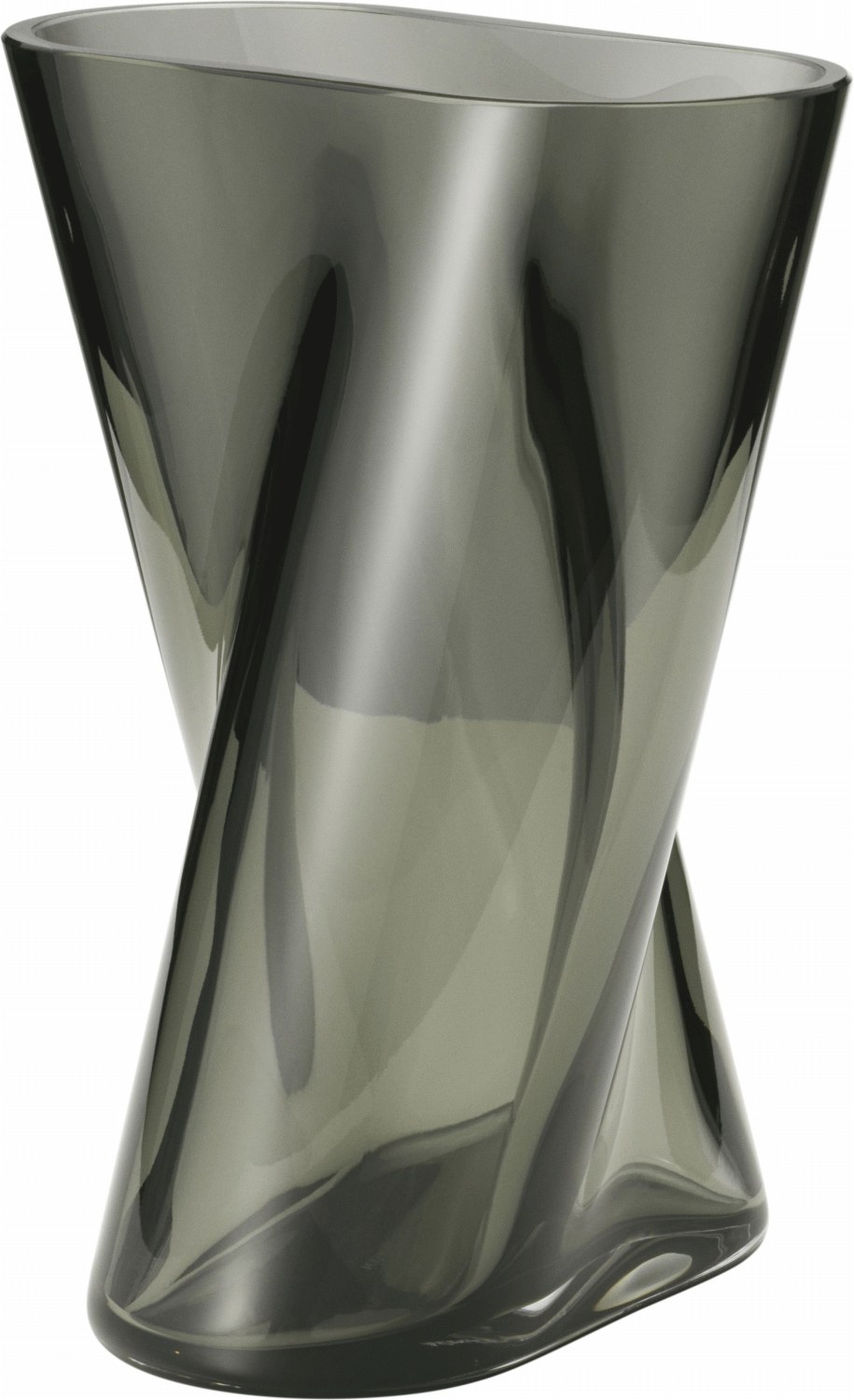 Vasen er fremstillet i røgfarvet mundblæst glas, hvilket giver hvert eksemplar et unikt præg og en dyb, sofistikeret farvetone. Det håndværksmæssige udtryk kommer til sin ret gennem glassets transparente kvalitet, der skaber et spil mellem lys og skygge. Den røgfarvede nuance gør vasen til en alsidig del af indretningen, der passer til både moderne og klassiske interiører.