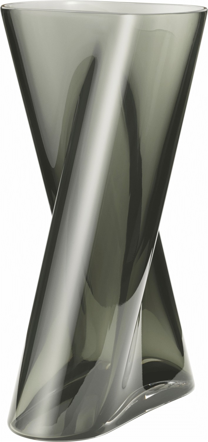 Vasen er fremstillet i mundblæst glas, hvilket sikrer, at hvert enkelt eksemplar bærer præg af håndværkets ægte kvalitet. Den røgfarvede finish giver vasen en sofistikeret dybde, der fanger lyset på en smuk måde og skaber interessante skygger og refleksioner gennem dagen. Denne glasbehandling fremhæver vasens skulpturelle linjer og gør den til et naturligt fokuspunkt, uanset om den står på en vindueskarmen, spisebordet eller en sidebord i stuen.