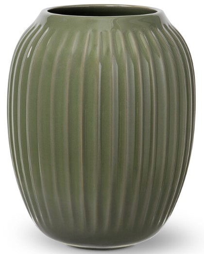 Den elegante mørk grønne H 21 cm vase i Hammershøi serien fra Kähler, er smuk til blomster eller dekorative grene, der kan bære årstidens pynt. Stil vasen som et flot midtpunkt på borddækningen, eller skab en flot helhed med resten af Kählers Hammershøi serie. De runde og bløde former i kombination med det smukke, riflede mønster er med til at skabe et enkelt og moderne udtryk, der passer perfekt ind i enhver bolig. Designet af Hans-Christian Bauer.