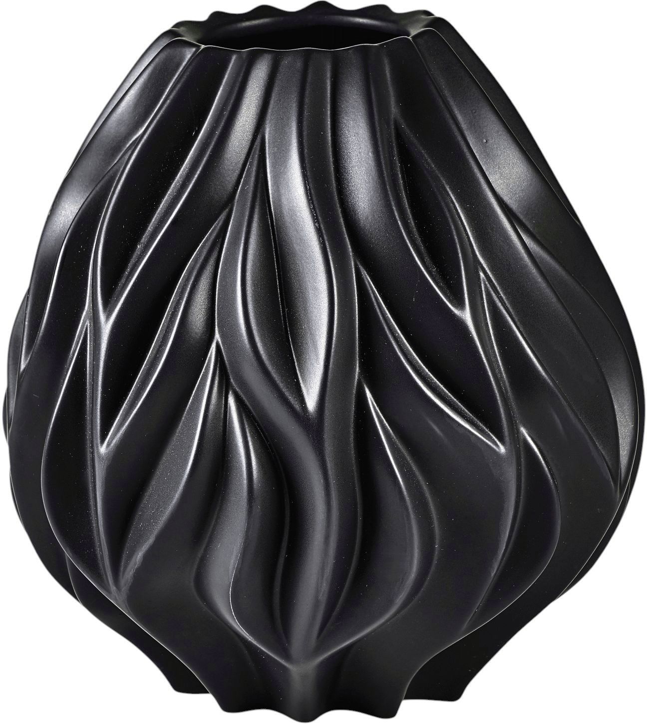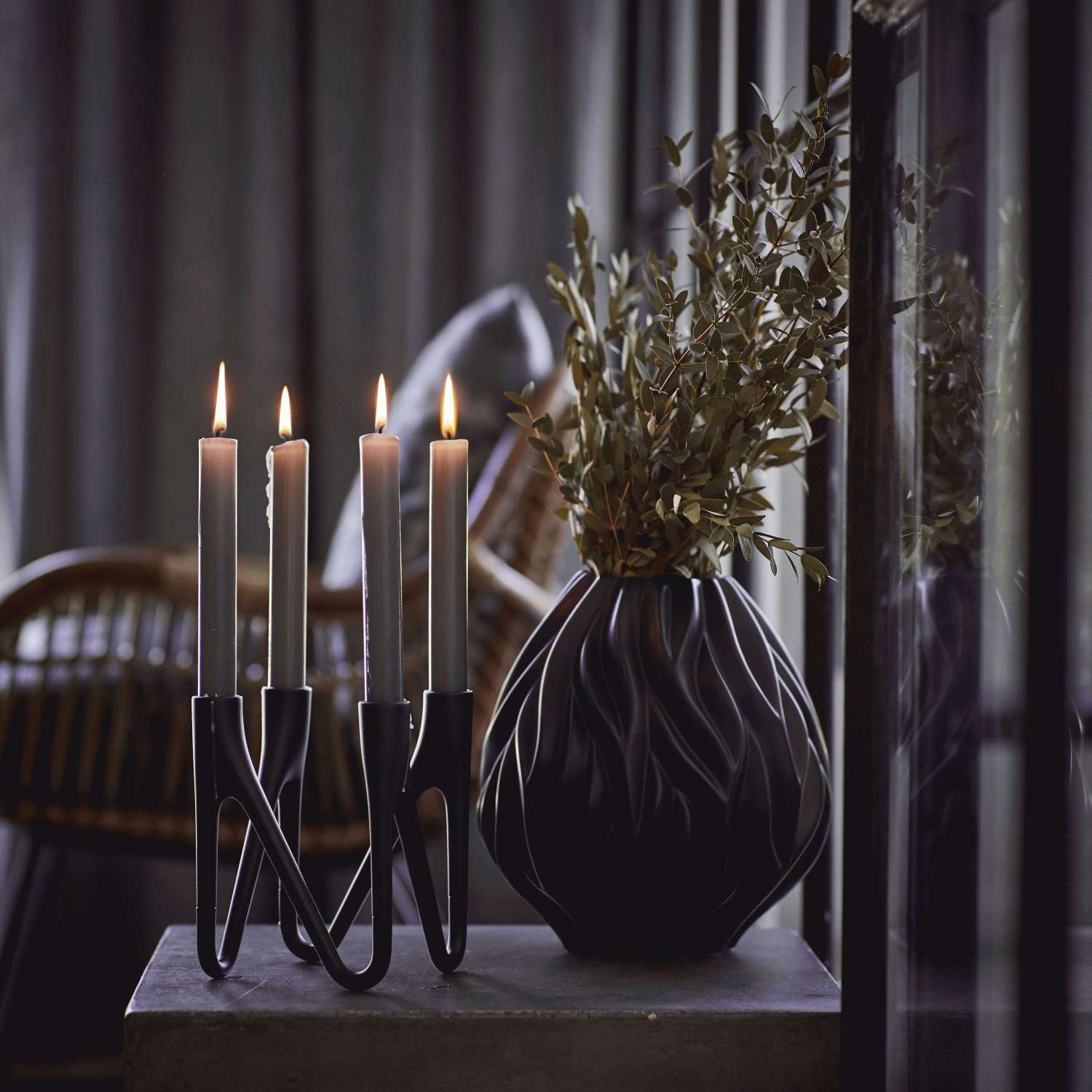 Morsø Flame Vase i 23 cm højde er et stykke dekorativt kunsthåndværk udført i porcelæn med en elegant mat sort glasur. Den organiske formgivning er inspireret af naturens egen kraftfulde element - ilden. Det bølgende mønster, der pryder vasens overflade, skaber et fascinerende skyggespil, hvor fordybningerne i designet rejser sig opad præcis som flammer, der slikker mod himlen.Denne skulpturelle vase fra Morsø tilfører dit hjem et strejf af nordisk elegance og naturnær æstetik. Den står smukt som et selvstændigt designobjekt på hylden eller bordet, hvor dens karakteristiske silhuet kommer til sin ret. Fyld den med friske blomster, og se hvordan det organiske design komplimenterer naturens egne former, eller lad den stå som et stilrent indretningselement, der taler for sig selv.