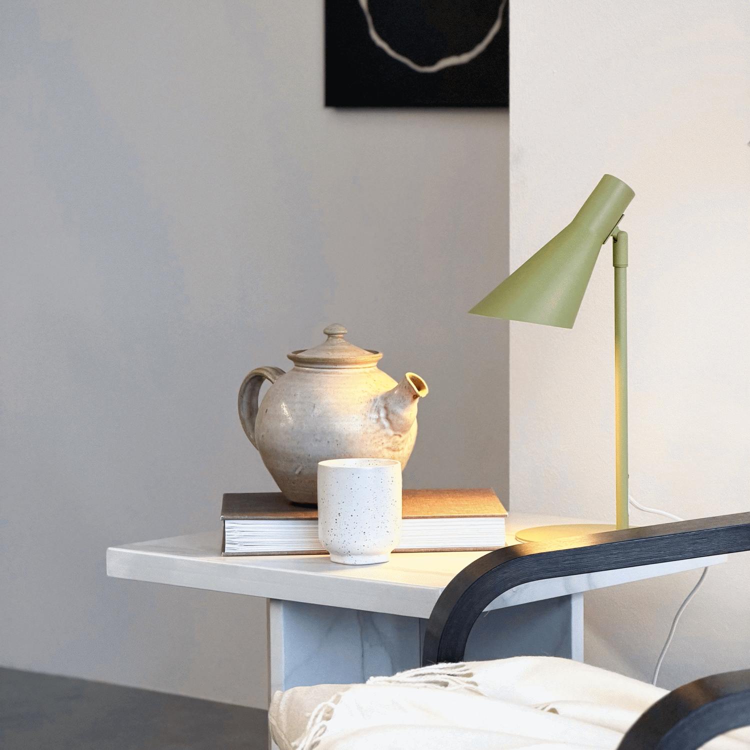 Den grønne metalfinish giver lampen et moderne og grafisk udtryk, der skiller sig ud i indretningen. Den skarpe silhuet og de rene linjer skaber et tidløst design, som nemt kan integreres i både moderne og klassiske interiører. Uanset om du indretter et hjemmekontor, en hyggelig læsekrog eller ønsker at tilføje atmosfære i soveværelset, vil DL12 Mini bordlampen være et stilfuldt valg.