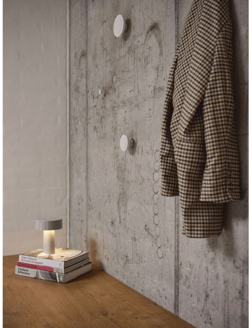 Med sin alsidige funktionalitet finder Sensu-krogen sin plads overalt i hjemmet. På badeværelset kan den holde håndklæder og badekåber, i entreen tager den sig af tørklæder og tasker, mens den i køkkenet perfekt organiserer viskestykker og forklæder. Den kompakte størrelse på 7,5 cm i diameter gør den ideel til mindre genstande, mens den stadig bevarer den karakteristiske grafiske profil.