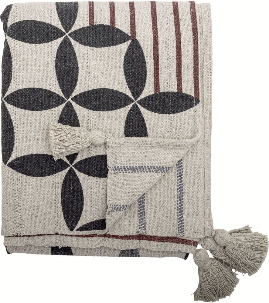 Forma Plaid fra Bloomingville bringer en harmonisk balance mellem mønster og enkelhed ind i hjemmet med sit gennemtænkte design. Dette vævet plaid i naturlige toner er skabt til at fungere i forskellige rum og stilarter, hvor det tilføjer både varme og visuelt udtryk. Med sine generøse mål på 130x155 cm er plaidet perfekt til at drape over sofaen, lægge over sengeenden eller folde sammen som et dekorativt element i dagligstuen.Designet udmærker sig ved sin dobbeltsidethed, der giver mulighed for at skifte udtryk efter behov og stemning. Den ene side præsenterer et markant blomstermotiv, der tilføjer personlighed og liv til indretningen, mens den anden side viser kontrasterende striber i et mere afdæmpet udtryk. Denne fleksibilitet gør plaidet til et alsidigt tilbehør, der kan tilpasses forskellige indretningsstile og årstider.