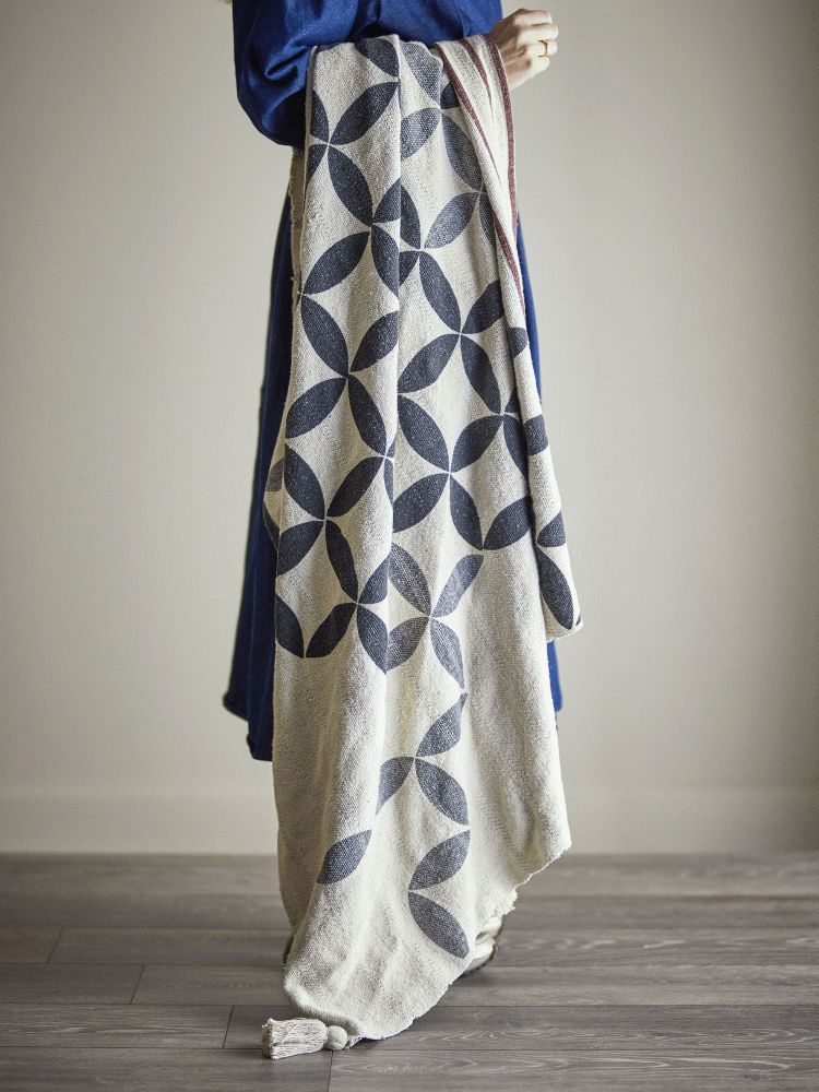 Detaljerne i udførelsen understreger kvaliteten og omtanken bag designet. Plaidet er afsluttet med kraftige kvaster i hvert hjørne, som tilføjer et håndværksmæssigt præg og visuelt finish. Denne detalje gør plaidet komplet og giver det et autentisk udtryk, der matcher Bloomingvilles kendetegnende æstetik.
