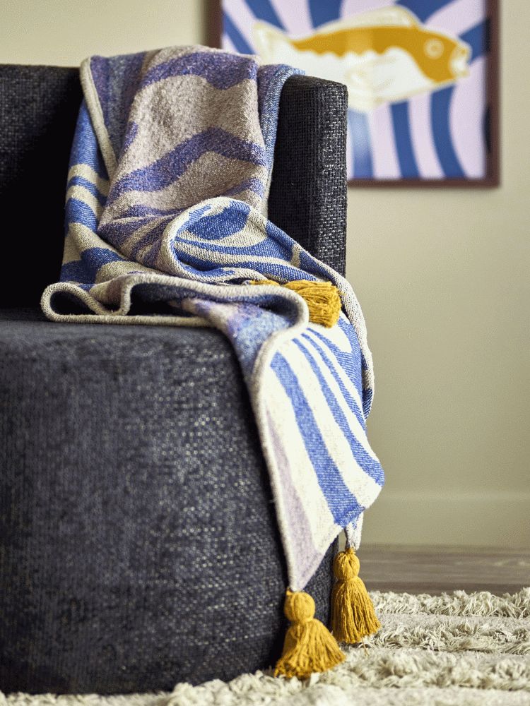 Arlie Plaiden fra Bloomingville bringer en blød og indbydende atmosfære til ethvert rum med sit smukke, vævede mønster i harmoniske farver. Det fine design kombinerer blide blå og beige nuancer, der skaber en rolig og afbalanceret æstetik, perfekt til moderne hjem, der værdsætter nordisk designtradition. Plaiden er fremstillet i bomuld og afspejler Bloomingvilles karakteristiske sans for detaljer og kvalitet.Et af de mest charmerende træk ved denne plaid er de dekorative kvaster i hvert hjørne, udført i dæmpet rosa og dyb gul. Disse farveaccenter tilføjer et legende og personligt præg, der løfter det klassiske plaiddesign til noget helt særligt. Bagsiden af plaiden præsenterer mønsteret i omvendte farver, hvilket giver dig mulighed for at variere udtrykket alt efter dit humør eller indretningsstil. Denne vendbare funktion gør plaiden ekstra praktisk og alsidig i hverdagen.