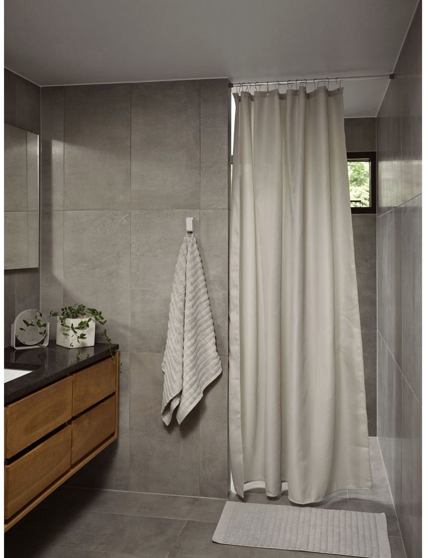 Med en vægt på 170 g/m² er dette badeforhæng markant tungere end standardmodeller, hvilket sikrer, at det hænger smukt og falder naturligt ned langs badekarret eller brusekabinen. For at forstærke denne effekt er der indarbejdet en vægtsnor i kanten forneden, som holder forhænget stabilt på plads og forhindrer, at det blæser ind mod brugeren under brugen af bruseren.