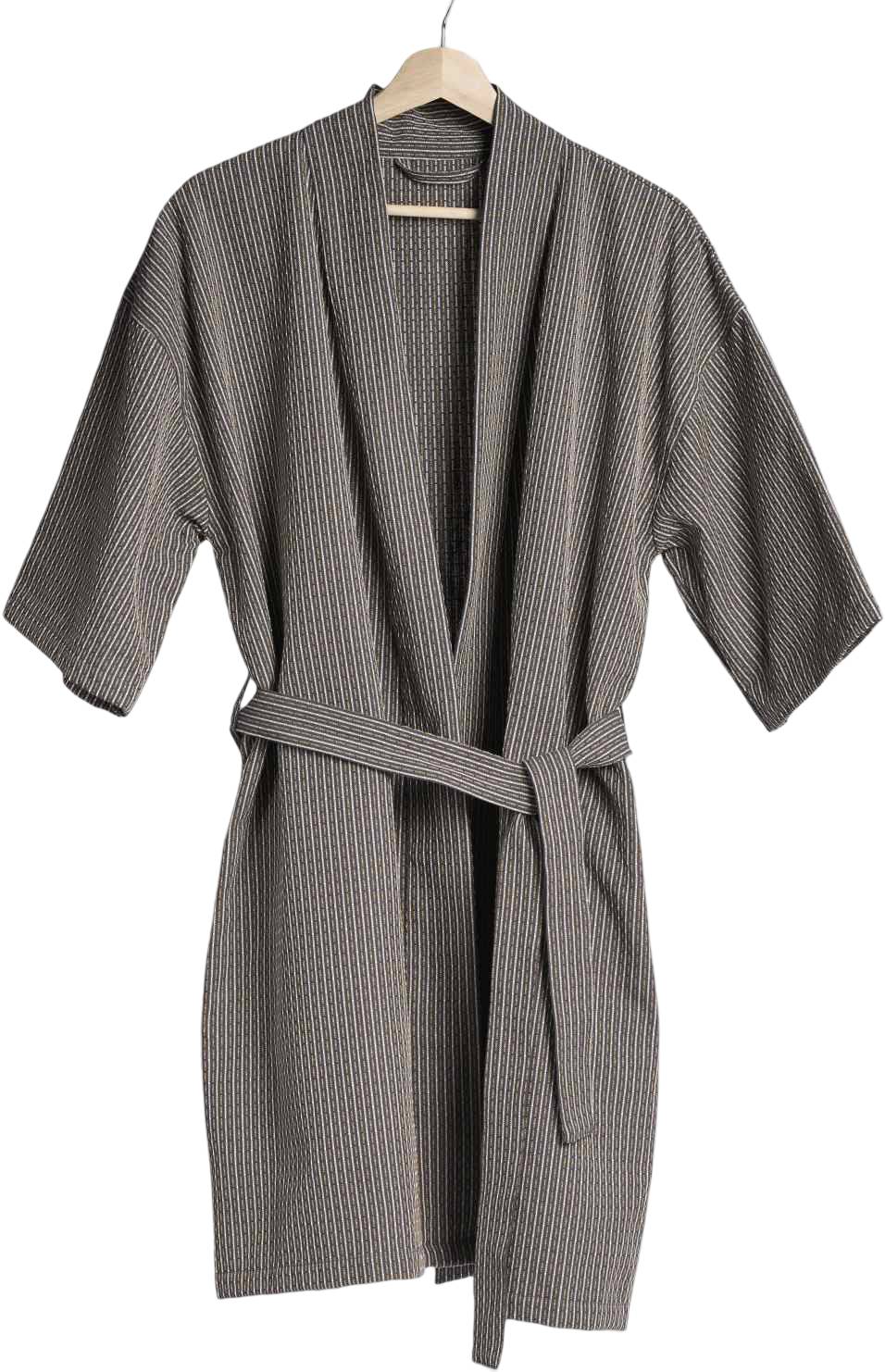 Badekåben er fremstillet i 100% GOTS-certificeret bomuld med en piqué-vævning, der giver en behagelig tekstur mod huden. Materialet er både blødt og absorberende, hvilket gør den ideel til brug efter badet eller som en hyggelig følgesvend i hjemmet. Den diskrete Volcano-farve tilføjer en moderne og stilren atmosfære, der passer ind i ethvert badeværelse eller soveværelse.