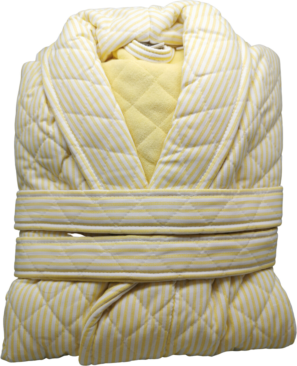 Flot badekåbe med skønne gule striber.Lækker og kraftig badekåbe i skandinavisk design, kan også bruges som vinterbadekåbe.
