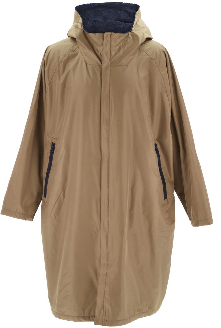 Kåben er designet med et vindtæt og vandafvisende ydermateriale, der beskytter mod vejrligets luner, mens det bløde fleecefor sikrer optimal komfort direkte mod huden. Den rummelige pasform gør det enkelt at have kåben på over våd badedragt, håndklæde eller endda let overtøj, hvilket giver dig maksimal fleksibilitet i brugen.